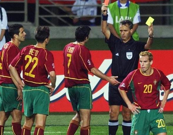 不比在欧洲杯还一度进入决赛,葡萄牙黄金一代在世界杯赛场上运气却很差。2002年韩日世界杯,黄金一代正值鼎盛,但却遇到了无底线的韩国队,在小组赛出线的关键战里,葡萄牙队被判罚两张红牌,出线生死战里,9打11输给韩国。