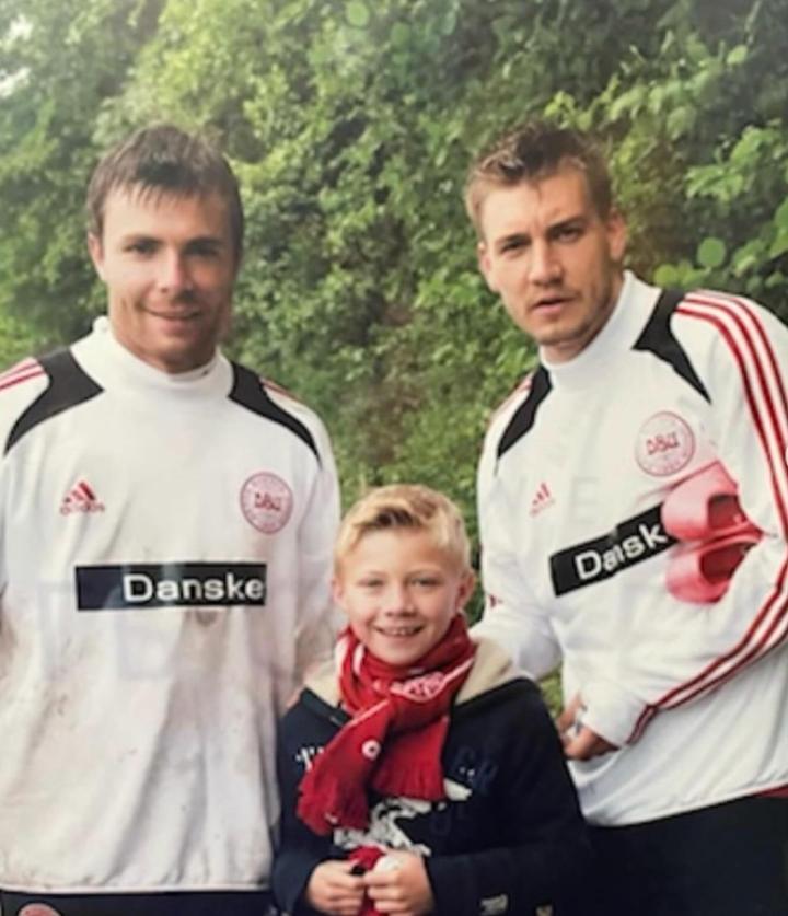 今日,曼联前锋霍伊伦在个人社媒晒出了一张童年照,是他和前枪手球员本特纳、前丹麦门将斯特凡-安诺生的一张合照。