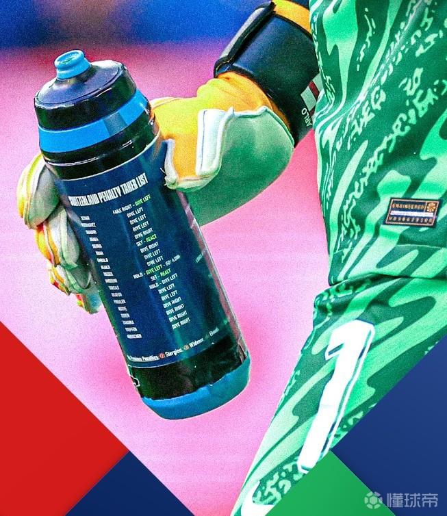 在照片中可以看到,瓶子上写着阿坎吉的点球偏好是“左下”,结果在点球大战的第一轮,皮克福德就往这个方向扑出了阿坎吉的点球,而英格兰队5人主罚全部命中,最终他们点球大战5-3淘汰瑞士。