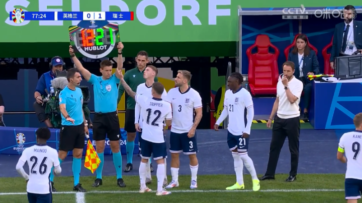 第75分钟,瑞士完成了一次教科书般的三中卫阵地进攻,恩博洛的进球彻底打醒了索斯盖特。场上比分出现变化,卢克-肖、埃泽和帕尔默第一时间就站在了场边,索斯盖特拿出了早就准备好的三中卫终极配置,可惜留给他们的时间已经不多了。