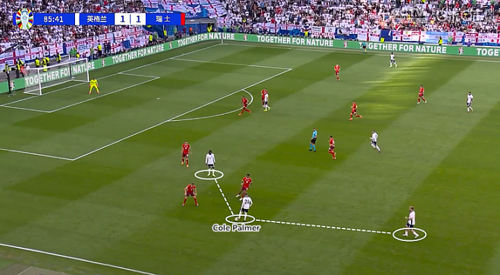 右路能够源源不断地将球送入禁区,英格兰的进攻威胁比此前提升了不少,但这还不足以敲开对手的防线。瑞士很快就摸清了英格兰的套路,这种仅靠一条腿走路的进攻方式明显不够用了。