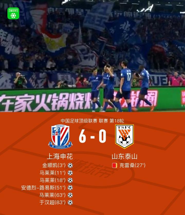 中超第18轮,山东泰山客场0-6惨败给上海申花,遭遇队史中超最大分差失利。