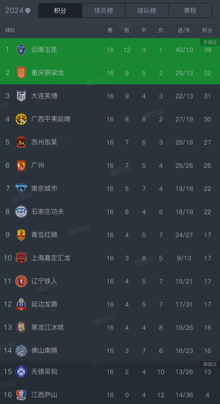 重庆铜梁龙两轮不胜,分差被冲超对手大连英博追至一分