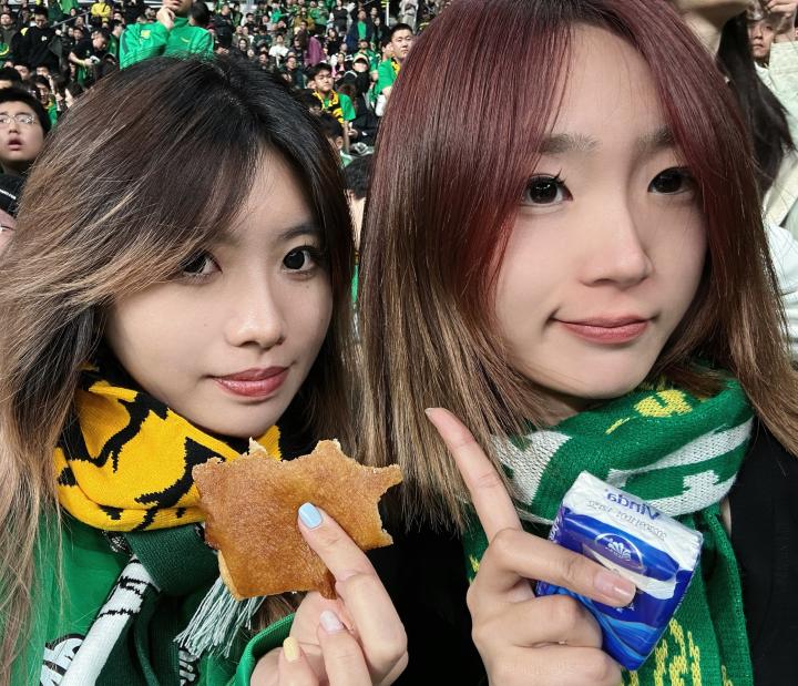 相信很多人入坑足球都有一个引领者,我也一样啦,不过这个人是个女生哦,是我的舍友!合照中的女生就是我的大学舍友兼好朋友兼看球搭子,也是她带我第一次看国安的比赛,那是在老工体的最后一场球,国安和山东泰山的对决,那会山东泰山队还叫山东鲁能队,球队落后但是后面追平并反超,当时的心情像过山车一样跌宕起伏。