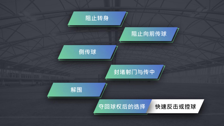 6.夺回球权后的选择——快速反击或控球:夺回球权后,我们需讨论如何处理球权,这涉及反击。在防守最后三分之一区域时,球队往往会选择“解围”,这意味着我们再次失去控球权。我们需要鼓励球员根据场上情况决定是快速反击还是保持控球。