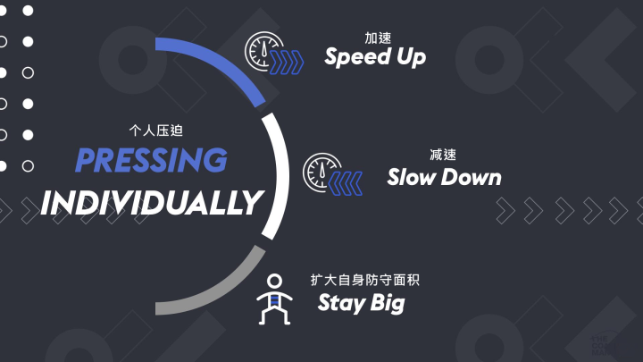 1.阻止转身:控制与克制的技术关键之一在于阻止球员转身。这防止球员带球前进或传球至更危险区域,迫使他们回传球,同时也让球队得以在球后快速恢复防守阵型。