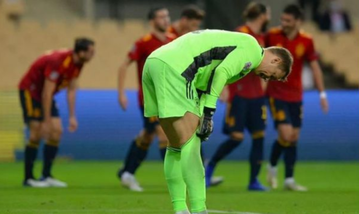 德国人坚持到了最后一分钟,最终还是失败了,自1988年之后,德国队已经30多年没有在正式比赛中击败过西班牙队了。
