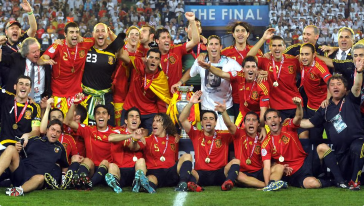 2012年欧洲杯,西班牙在决赛中4-0大胜意大利,成为首支蝉联欧洲杯冠军的球队。