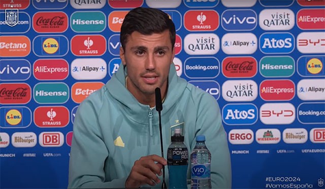 西班牙中场核心罗德里随主帅德拉富恩特出席了欧洲杯半决赛的赛前发布会,他们将与法国争夺一个决赛名额。