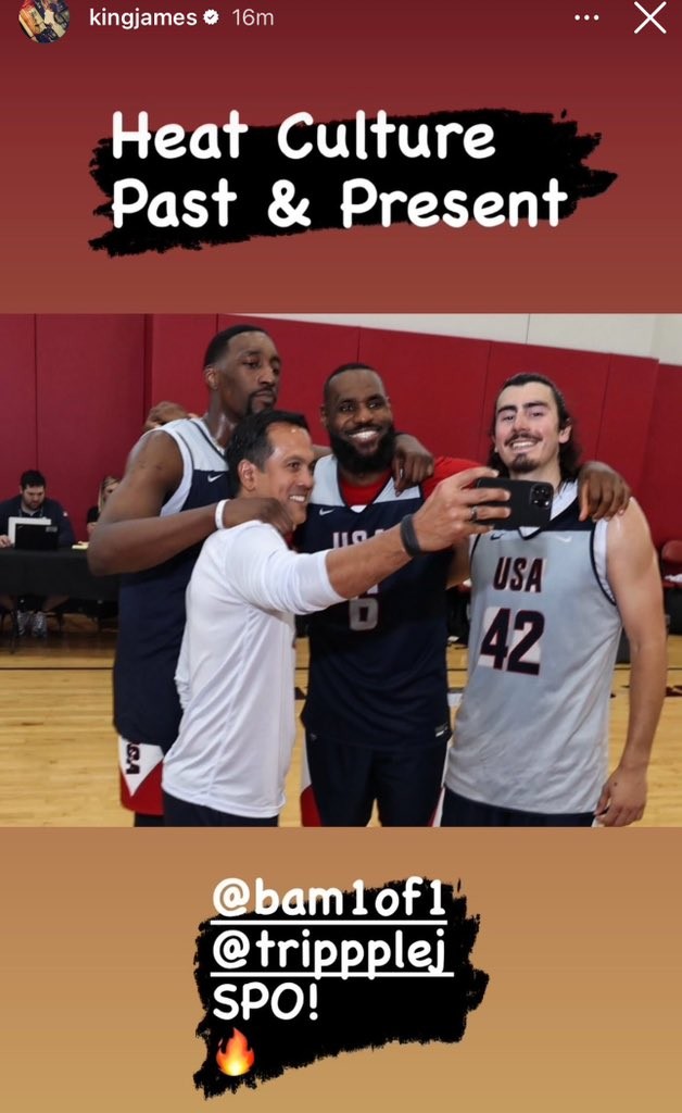 詹姆斯晒与三位热火成员合影:过去和现在的热火文化凡尔赛小木屋 @懂球帝2024-07-09 13:35北京时间7月9日,正在备战巴黎奥运的美国男篮迎来队内热身赛,最终他们74-73险胜陪练队。赛后,詹姆斯更新社媒,晒出与三位热火成员的合影,并写道:“热火文化,过去和现在。”现任热火主帅、热火“三巨头”时期主帅斯波尔斯特拉目前担任美国男篮助教,热火中锋阿德巴约入选美国男篮奥运阵容,而内线小海梅-哈克斯则入选陪练队。展开更多