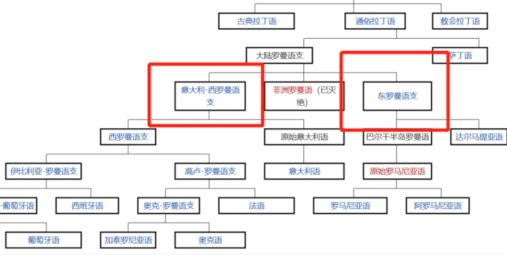 西法兰克,即法兰西使用的法语以及中法兰克(意大利)所使用的意大利语,都是在罗曼语族的基础上发展而来。