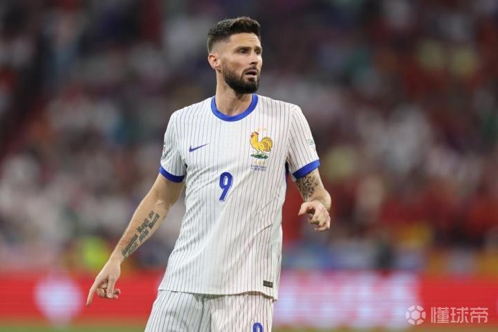 欧洲杯半决赛对阵西班牙的比赛中,法国前锋吉鲁在下半场替补出场。
