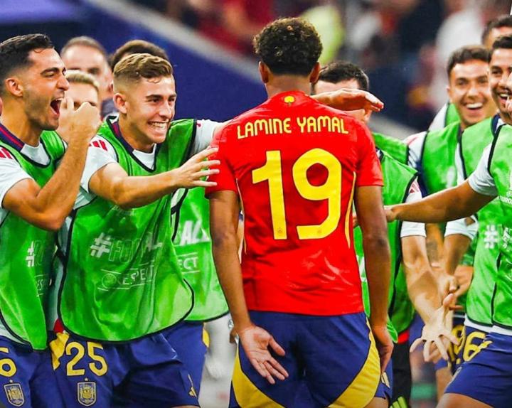 比赛第20分钟,亚马尔打出一脚世界波,直挂死角,帮助西班牙扳平比分!