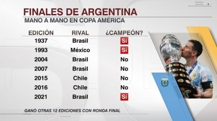 阿根廷此前7进美洲杯决赛3次夺冠,曾连续两年点球大战负智利
