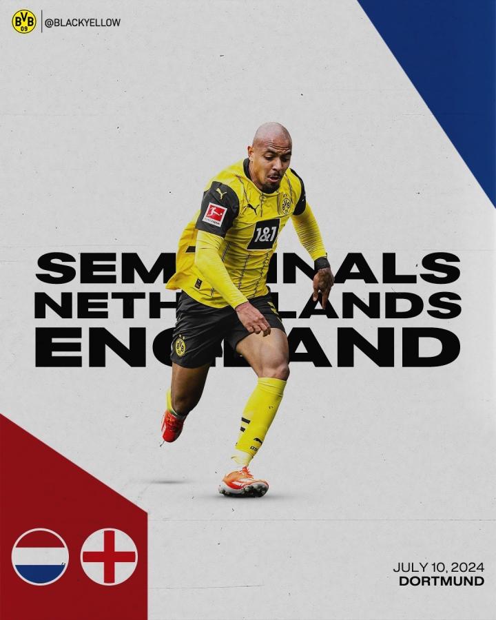 2024年欧洲杯半决赛,荷兰队将对阵英格兰队,赛前,多特蒙德官方发布海报为球队的荷兰前锋马伦加油。