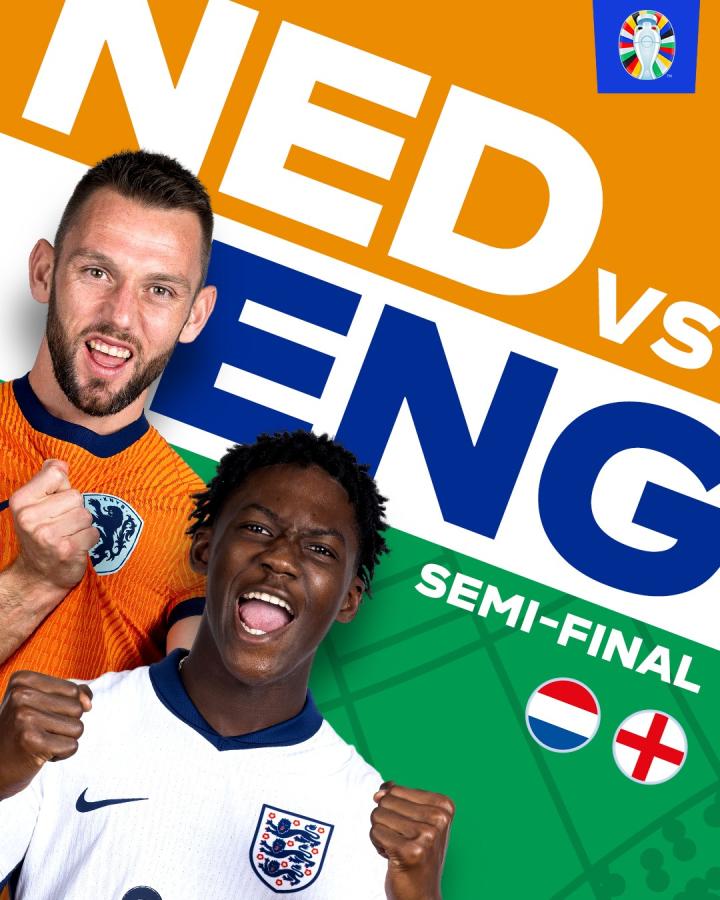 2024年欧洲杯半决赛,英格兰对阵荷兰队,在首发方面,两队各进行了一处调整,英格兰队方面,中卫格伊解禁复出,顶替孔萨,荷兰队方面,1/8决赛替补登场上演梅开二度的马伦先发出战,顶替贝尔温。