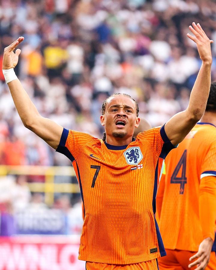 2024年欧洲杯半决赛,荷兰队对阵英格兰队,上半场哈维-西蒙斯破门为荷兰队取得领先,成为荷兰队史欧洲杯进球第二年轻的球员。