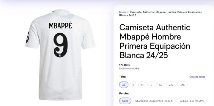 今日,皇家马德里官方网上商店上架了姆巴佩的皇马新赛季9号球衣。