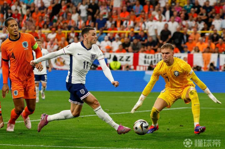 (图)只要能够打穿荷兰的中场防线,英格兰攻击手便可获得开阔的空间。凯恩和福登体能下降,英格兰需要体能更充沛的球员完成穿插跑动,帕尔默和沃特金斯替补出场。科曼率先调整了中场组合,贝林厄姆需要留在场上保证中场的对抗。