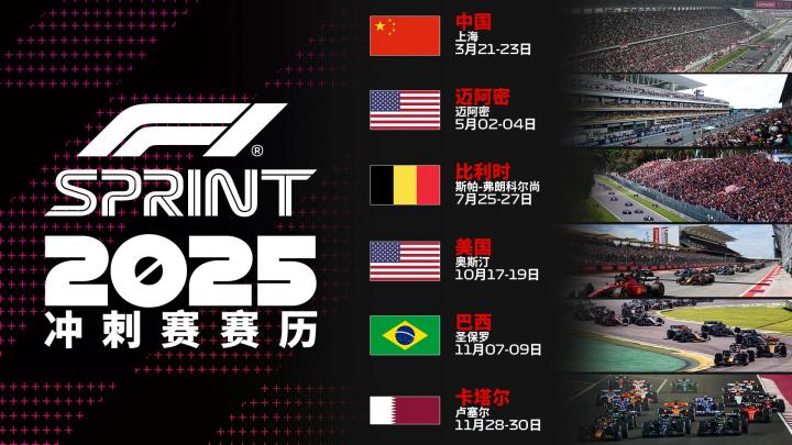 北京时间7月11日,F1官方公布了2025赛季冲刺赛的赛历,2025赛季将依旧保持六个冲刺赛比赛周末的设定,中国上海站在列。