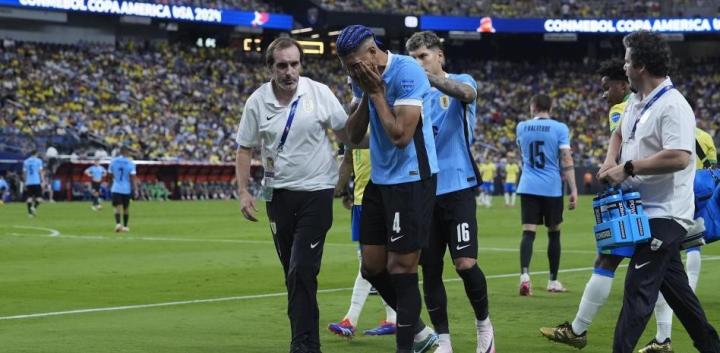 阿劳霍在对阵巴西的美洲杯1/4决赛中遭遇受伤。乌拉圭足协官方在周二发布了一份简短的伤情公告,称阿劳霍经检查后确认为肌肉损伤。