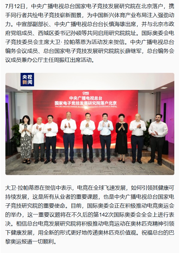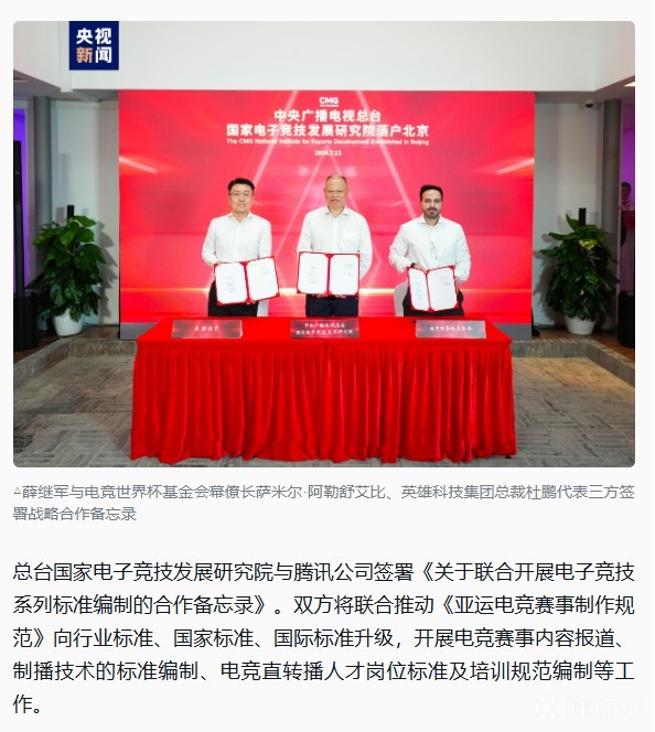 今日中央广播电视总台国家电子竞技发展研究院在北京落户,携手同行者共绘电子竞技崭新图景,为中国新兴体育产业布局注入强劲动力。