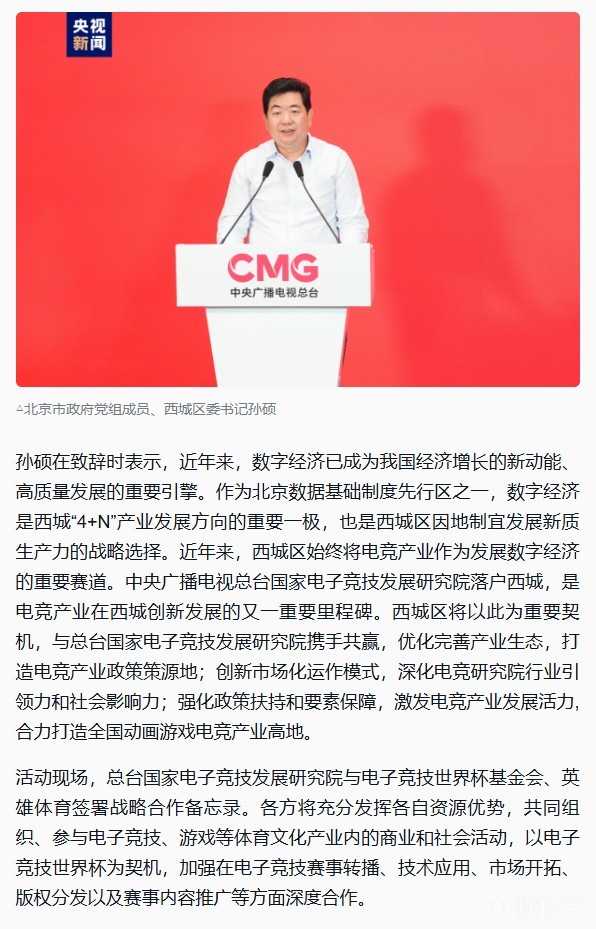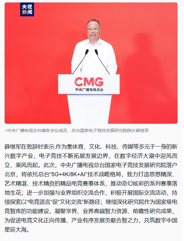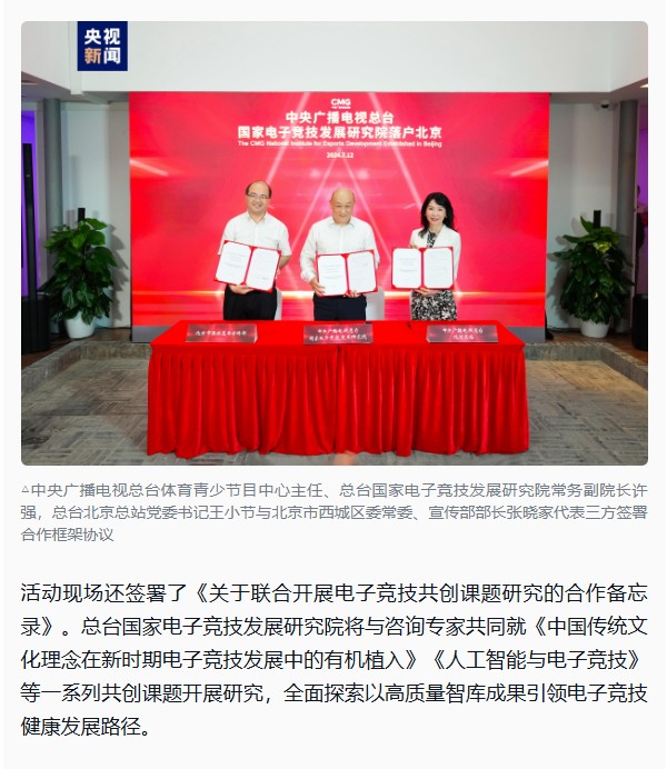 启用!中央广播电视总台国家电子竞技发展研究院落户北京