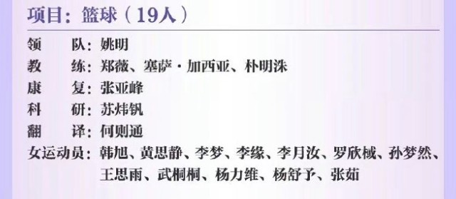 中国女篮奥运12人大名单:韩旭、李梦、李月汝领衔,姚明领队