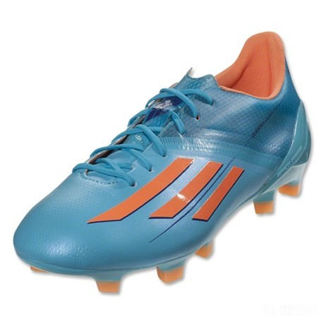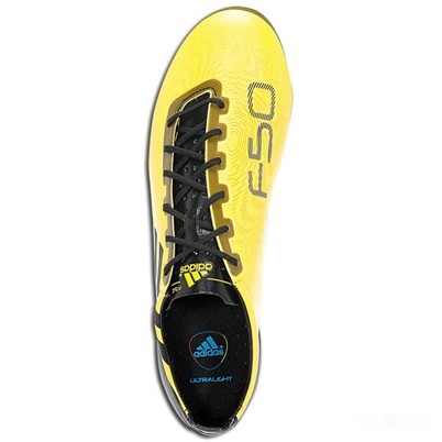 F50 Adizero 4足球鞋在鞋楦设计上,也更加融入了对亚洲使用者考虑的因素。球鞋中间偏后的位置,对宽脚人士而言,包裹性十分出色;而前掌的设计,也是非常人性的出奇得宽,再加上可以贴和双脚的性能,实在是舒适无比。说她是Adidas近年最舒服的足球鞋也毫不为过!F50 adizero4的SprintFrame大底经过了改进,前掌的7颗钉还采用饿了旋转不规则的方式,对于球鞋整体的抓地力以及启动和加速功能的提升,实在是非常显著的。更重要是的,在采用了密度较高的HybridTouch材料鞋面之后,球鞋整体重量依旧被控制在了160克左右,F50 Adizero 4依旧是最轻的足球鞋之一,大底的减重功能实在是功不可没!