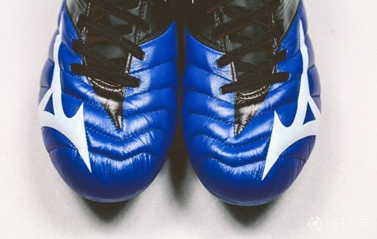 Mizuno Basara 101足球鞋的经典配色就是上图的蓝黑色,再考虑到日本的民族特点,于是人送外号“蓝武士”,要是考虑这双鞋本身的特点又可以称她为“东瀛快刀”!我们于是也不难理解这款鞋确实在速度性能上做到了极致。从配置角度来讲,她并没有继续使用Mizuno拿手的日系袋鼠皮,本身也说明了日本品牌对这鞋品质的绝对自信!Basara足球鞋的鞋面使用的是名为PrimeSkin的一种人造超纤维材料,这和前文的F50系列相仿。不过质感是这款材料的最大优势,Mizuno也确实下了功夫,变得跟仿皮质感一样柔软,按压纹理也接近于天然皮革。表面厚度不足2毫米,这款鞋的触感和赤足感真是无可置疑的优秀!