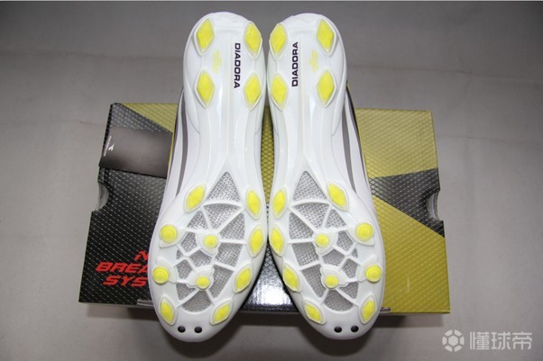 Diadora DD-NA足球鞋的大底采用Diadora足球鞋的科技巅峰,搭载Net Breathing System透气系统的GLX14,后钉长度也仅有1厘米左右,而平行四边形的鞋钉造型也能在鞋钉长度较短的情况下保证良好的抓地力,而透气系统的实战表现已经经过全球各大足球鞋评测机构的证实绝对真实有效,夏日绝佳选择。整鞋仅重180克左右,在大底具备如此复杂设计的情况下做到这个重量,Diadora的设计师们也非常不容易了。综合而言,这是一双实战性能绝佳的超轻速度系球鞋。