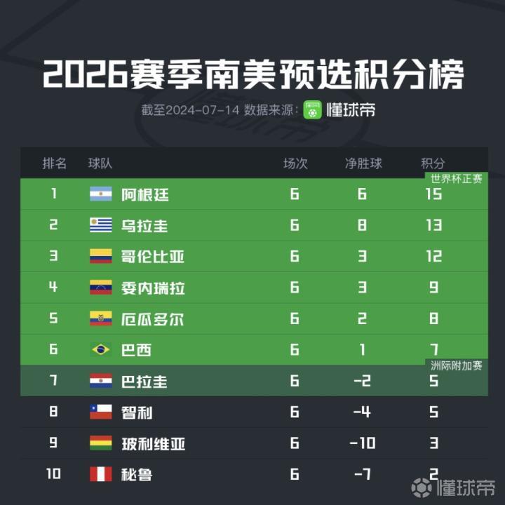 保持强势,美洲杯前三名的球队也是目前南美预选赛的前三名