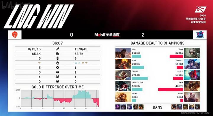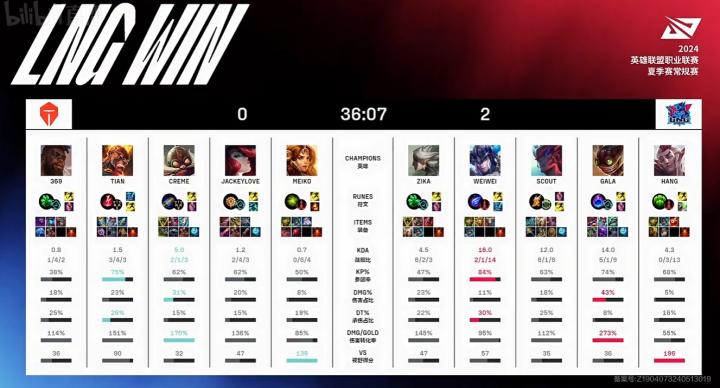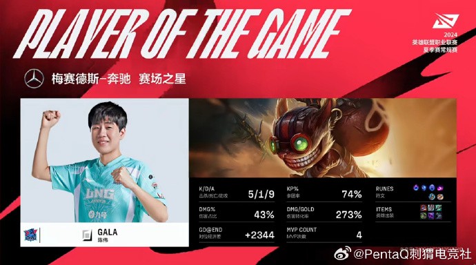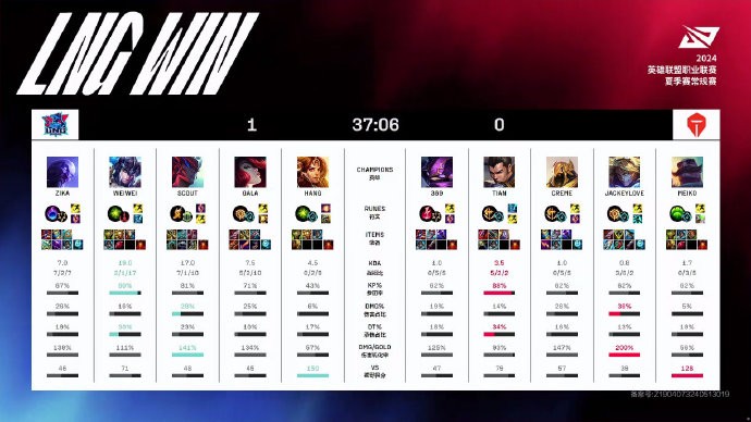 2024LPL夏季赛:LNG 2-0 TES,GALA伤害拉满豪取三连胜