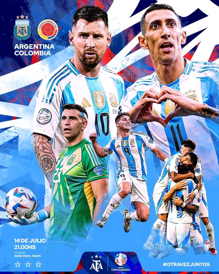 2024年美洲杯决赛,阿根廷将对阵哥伦比亚,赛前,阿根廷队官方发布比赛海报。