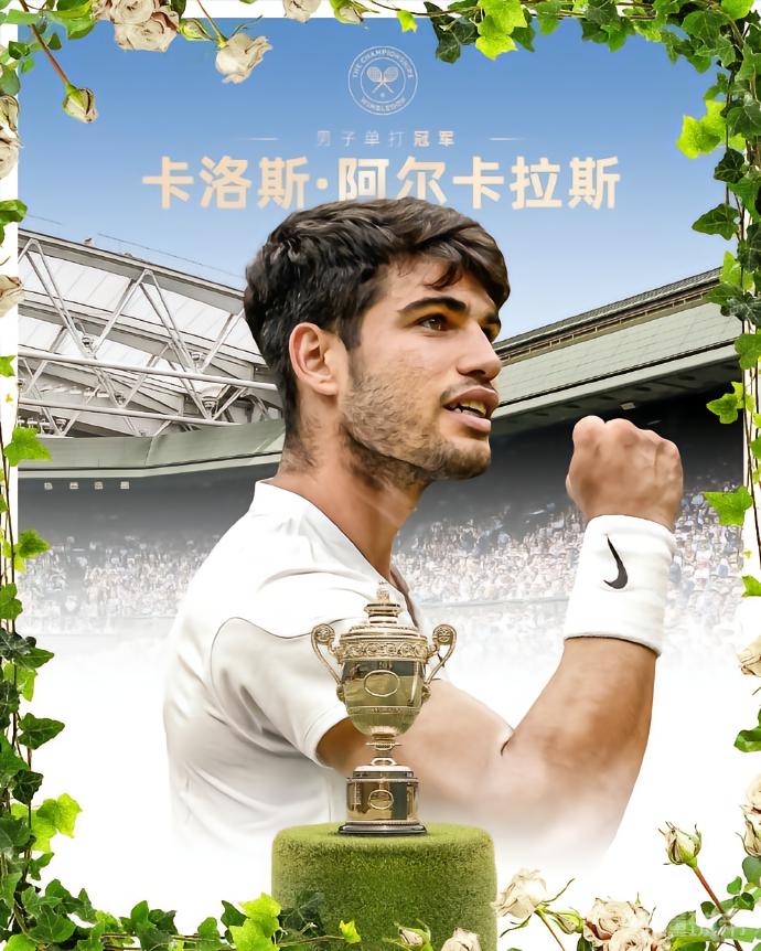 阿尔卡拉斯成为公开赛年代第6位法网和温网背靠背夺冠的球员。膝盖手术仅一个月便复出的德约科维奇错失追平费德勒温网八冠纪录。