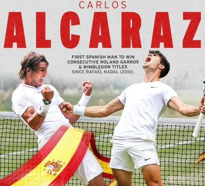 同时,阿尔卡拉斯也完成了本年度法网和温网的背靠背夺冠。