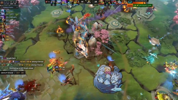几乎是和第一局相似的局面,只不过这次占优的是LGD!前期河道的小规模团战杀人杀鸡,随后大圣+滚滚开始扫图带节奏,游到哪抓到哪!中期局势僵持又是34号位站出来带节奏,猴子和火猫带盾和奶酪上高,最后一波团战摧枯拉朽,LGD战胜OG,晋级败者组!