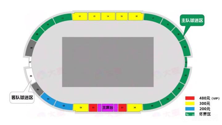 因体育场座位有限,本场比赛单场门票不再受理退票业务,请谨慎下单购买。本场比赛可售散票票区图如下: