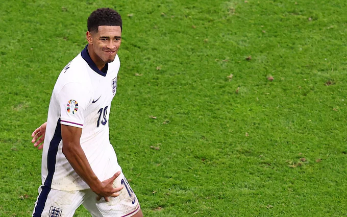 英格兰在1/8决赛2-1赢下斯洛伐克后,贝林厄姆不知道在看台上看到了什么,情不自禁的做出了一个掏裆的动作。事后他被欧足联停赛一场,但可以延期执行。