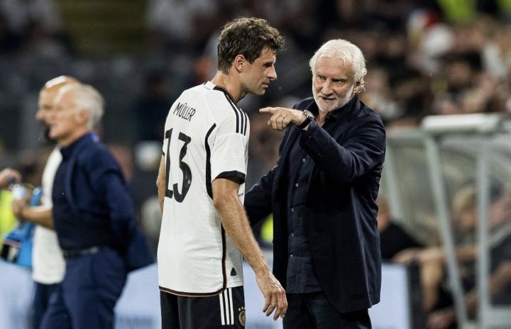“对我来说,这是一次美好的回忆。在去年9月我执教德国队时,他在对阵法国队的比赛中打进了他的最后一个国家队进球。在那时,我让他首发出战了,托马斯-穆勒在比赛开始的4分钟后就进球了。这是他的另一个特点:当你需要他的时候,他就在你身边。托马斯将继续留在拜仁,德国足协会想念他的。”