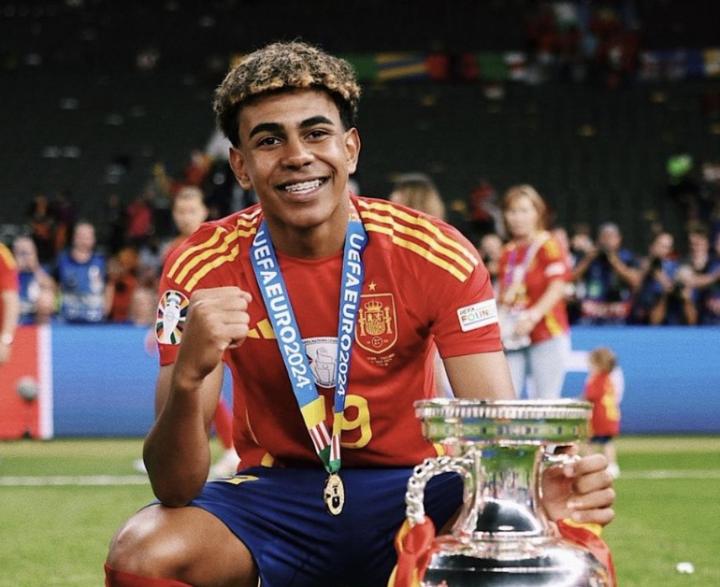 西班牙国家队获得2024年欧洲杯冠军,在本届欧洲杯淘汰赛中,亚马尔场场都参与了进球。