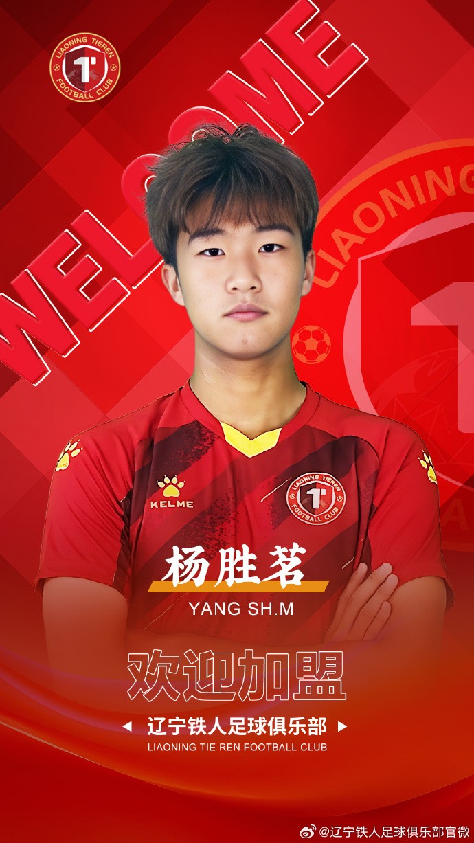 欢迎杨胜茗加盟辽宁铁人,希望在在球队中能快速提升能力,展现足球才华!