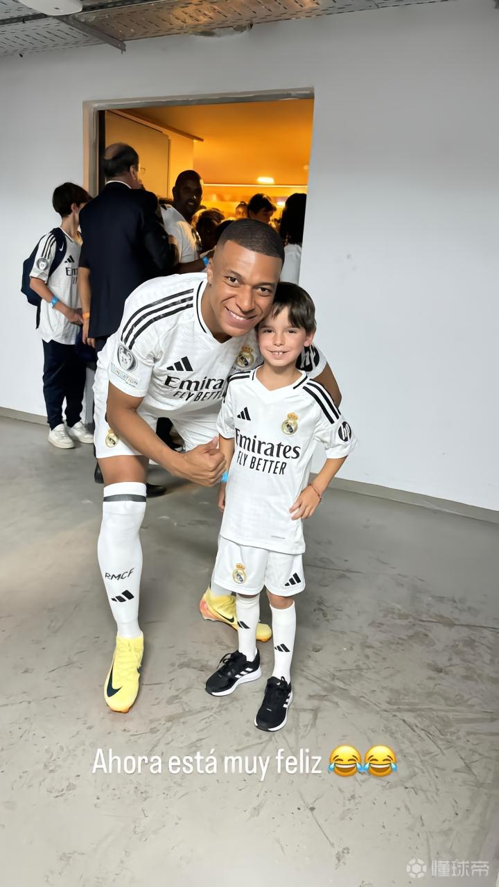 随后,库尔图瓦还晒出了儿子和姆巴佩的合影,配文:“现在他非常开心。”
