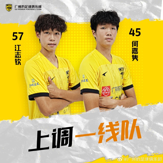 广东广州豹官方:俱乐部U17球员何嘉隽、江志钦上调一线队
