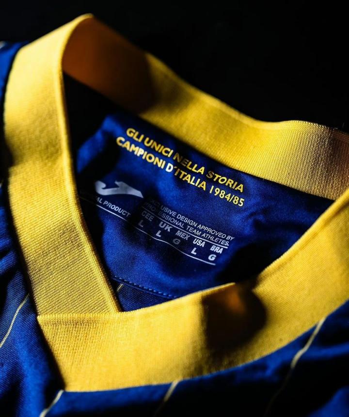 Joma携手维罗纳足球俱乐部 推出2024-25赛季全新主场球衣。 1984/85 赛季,由维罗纳夺得意大利冠军,这是意甲联赛中唯一一支来自非大区首府城市的球队夺得冠军。 在那场历史性的比赛中,黄蓝军团身着的球衣简约而独特,以俱乐部主题色黄、蓝两色作为主色。 这件标志性球衣在 3-1 战胜那不勒斯的比赛中首次亮相联赛,球衣的设计从中汲取灵感,并在细节上丰富了对冠军维罗纳的致敬。蓝色球衣上有非常细的黄色细条纹,与胸前的标志相交。 两只猎犬徽章是当时球衣的另一个象征,它由硅胶制成,通过热熔粘合在球衣心脏处,而技术赞助商Joma则出现在右侧。黄色条纹也延伸到球衣袖子上,在黄色袖口结束。 在球衣背面,就在衣领下方,出现了三色旗,向巴尼奥利的球队致敬。 另一个致敬元素是位于球衣内侧、同样位于衣领下方的补丁,上面写着“ Gli unici nella storia”致敬1984/85 年意大利冠军”。 2024/25 赛季主场球衣的代言人是维罗纳的意大利冠军队队长、代表球队出场 255 次的标志性球员罗伯托·特里切拉 (Roberto Tricella)。 很显然,这件球衣,带有浓烈的复古元素。我们在向经典致敬的同时,不乏创新与巧思,使得整件球衣更具质感!