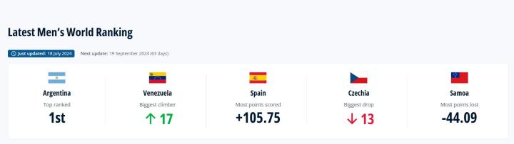最新FIFA排名之最:委内瑞拉上升17位最高,捷克下降13位最多