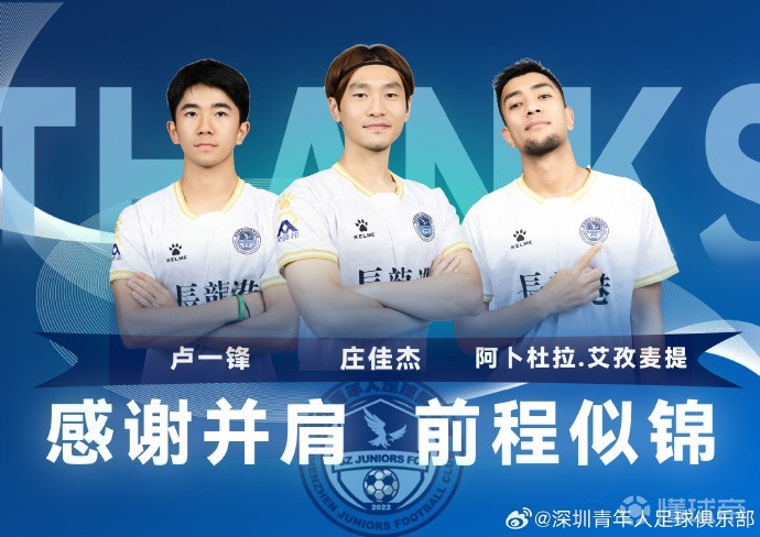 深圳青年人官方宣布,俱乐部球员庄佳杰、卢一锋、买买提阿卜杜拉正式离队