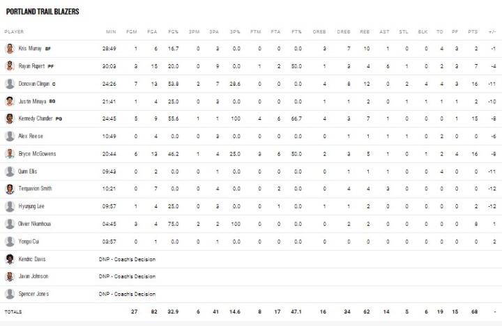 崔永熙末节练兵时间登场0分!开拓者68-84黄蜂&全队三分41中6