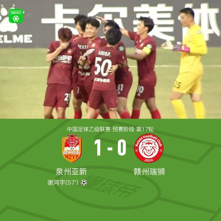 泉州亚新1-0赣州瑞狮终结十轮不胜,谢鸿宇百步穿杨