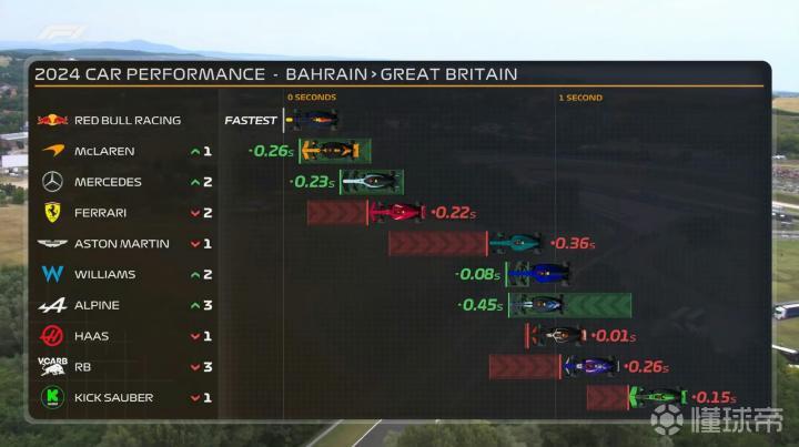 各车队赛中升级情况对比:梅奔/Alpine/威廉姆斯进步显著!法拉利/小红牛负升级!